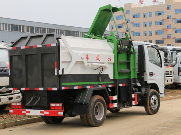 該車箱體有效容積:5立方,箱體前部側(cè)面帶有掛桶提升機(jī)構(gòu),可自動(dòng)舉升垃圾桶倒入垃圾,帶自卸功能,尾部裝有橡膠密封條,防污水滴漏,杜絕二次污染。掛桶垃圾車可根據(jù)客戶要求搭配120升或240升塑料桶和鐵桶。
