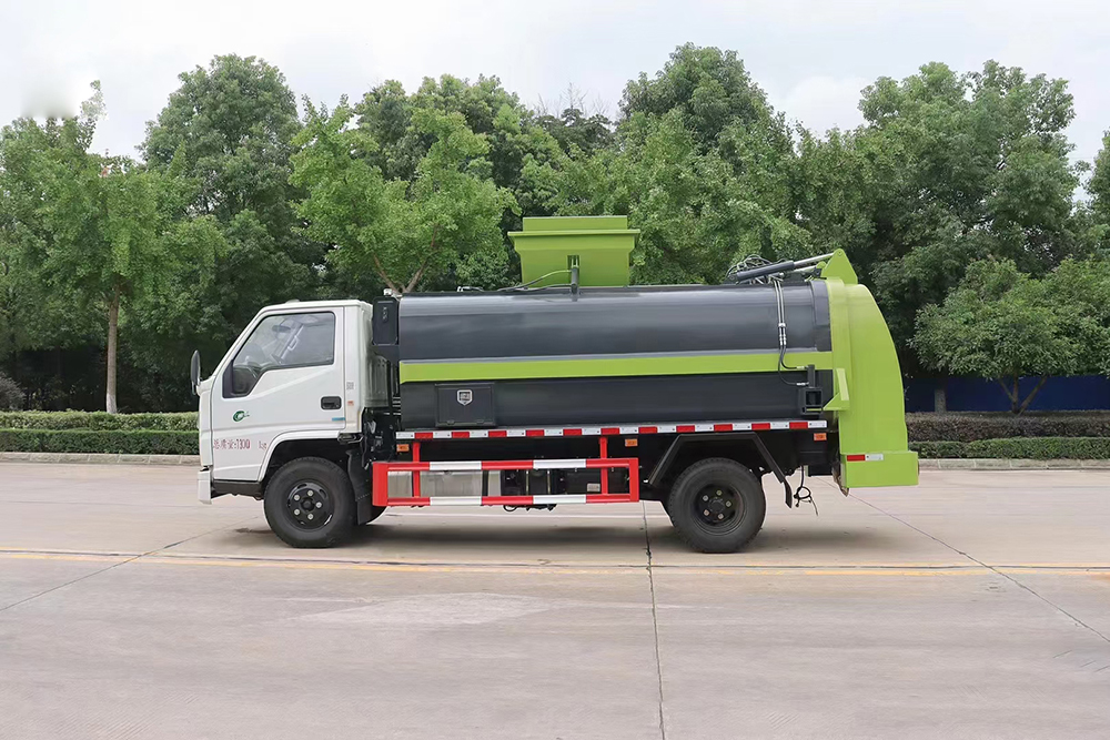 泔水裝載由垃圾桶提升系統(tǒng)完成,該系統(tǒng)具有垃圾桶鎖止結(jié)構(gòu),裝卸安全可靠。垃圾桶與垃圾投入口銜接好,保證裝卸過(guò)程中餐廚垃圾不溢撒、不遺漏。垃圾投入口與推板之間有足夠距離,推板與罐體內(nèi)表面設(shè)有密封裝置,避免餐廚垃圾投入過(guò)程及分離過(guò)程中溢到推板后方。 液壓系統(tǒng)由泵、液壓閥和順序閥以及各種功能的液壓油缸、高低壓管路組成。關(guān)鍵部件可選用原裝進(jìn)口,保證產(chǎn)品工作可靠、安全。